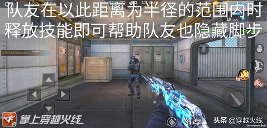 ◆踏雪无痕:释放此技能后可以使自己和周围队友的脚步声(包括跳跃)彻底消失,持续3秒,技能CD为30秒。这个技能的实用性非常大,特别是爆破模式中,大家集结准备打一波时,开启此技能就能打对手个措手不及。