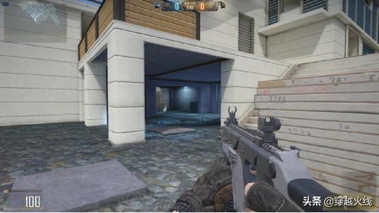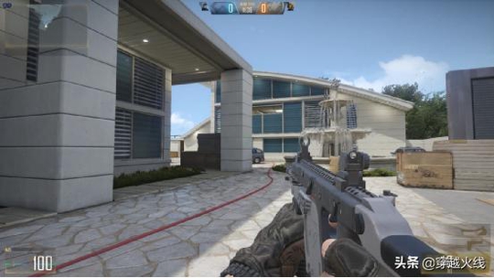 从雷达图来看,这并不是一张轴对称的地图,潜伏和保卫的复活点位于对角线上。这张图整体似乎不是特别的大,看起来非常紧凑,主要的战场应该就是地图中心位置的房区。 因为是在房子内部,所以贴脸的遭遇战应该会非常的多,相信擅长近战的冲锋和霰弹枪在这里会有一战之力。但是或许还有一种可能,那就是越过房区直接射杀从复活点走出的敌人,实际到底会不会如同我们通过雷达图猜测的这样呢? 目前还不清楚哪边是潜伏哪边是保卫,所以我在雷达图中给两边的复活点分别标注了A和B,下面是A处的外景: