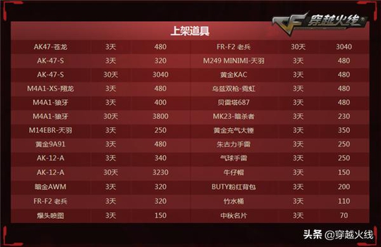 在2月份火线币商城也将迎来大的更新,有部分商品将上架和下架。同时推出2月限时售卖商品——M200-青花瓷(永久),价格为26000火线币,非常值得购买。另外还有AK-苍龙、M4A1-XS-翔龙、黄金 9A91等期限武器上架,而AK47-紫罗兰、AK-12-S、神马名片等限时道具下架。