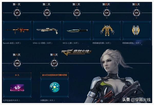 更新有礼 每日签到拿永久名片 除此之外,即日起至1月19日,各位玩家仅需进行每日签到,即可进入活动页面领取对应的道具。根据玩家签到总天数的不同,将获得从Barrett-战龙(30天)到终极泰坦玩偶(30天)与终极泰坦背包(30天)再到七夕纪念名片(永久)的不同好礼,前10万名签到完毕的玩家还可额外获得一份水晶宝珠(永久)。