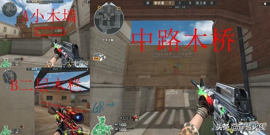 巧克力小镇这张图其实不太适合打狙击,虽然可穿透的地方非常多,但是地图本身较小,没有大直路,稍微长一些的道路也没有抽人的点位(例如B大道的B门没有缝隙,完全看不到B包情况)。中路因为木桥(桥下可以过人)的缘故,无法对狙,所以过中路完全不用担心被抽掉。木桥靠近警家,在上图木桥后方便是两条小道,分别通向A包、B包。 眼前一亮的小点位