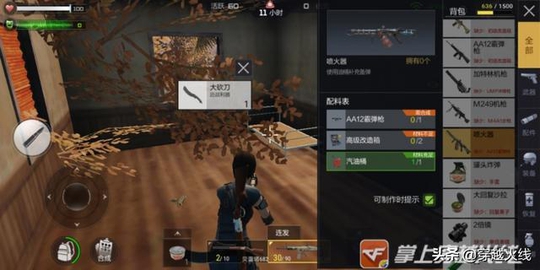 小编开头也是说过,这个最终12小时中的武器,都拥有独特的合成玩法,遇到不喜欢的武器? 别慌, 千万千万不要丢掉 ,裹上鸡蛋液…不对,打开合成表,找到一把强势的武器,你就会发现, 大部分的高级武器,都是可以从初级武器合成上来的 ,例如上图的喷火器,玩过他的小伙伴们,应该都知道这武器有多强势,而合成他,需要的武器是一把AA12霰弹枪,合成AA12需要的武器则是满大街都是的贝雷塔。