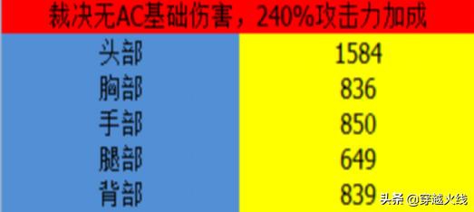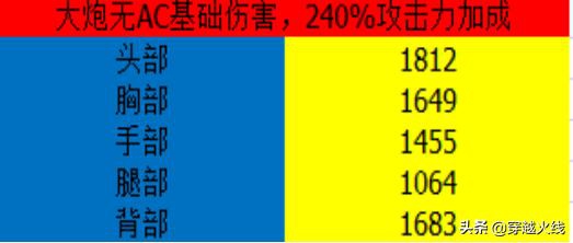在生化模式中,防化服会给僵尸增加1000AC,防弹头盔和防弹衣会增加100AC,这里的没有AC指的是去掉这三个防具,纯裸装。 通过伤害数据我们就可以看出大炮的基础伤害都是非常高的,打中僵尸身体的任何一个部位都超过了1000伤害,除了头部外,其他部位基本都是裁决的近两倍伤害。而裁决除了打头能够达到1500,其余部位均1000以下,因此在生化模式中论基础伤害还是大炮高。 但又有人疑问了,为什么裁决大多数时候都是一枪一分到手,甚至能够一枪爆头小僵尸呢?