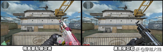 精英部队的潜伏者形象身穿沙漠迷彩的军装,而保卫者则是深色的紧身战斗服。共同的特点是都有贝雷军官帽和防弹衣(物资马甲)。 在外服中精英部队角色具有免疫己方玩家手雷伤害的属性。至于国服,当然也就继承了这一属性特色了。 保卫者手持状态: