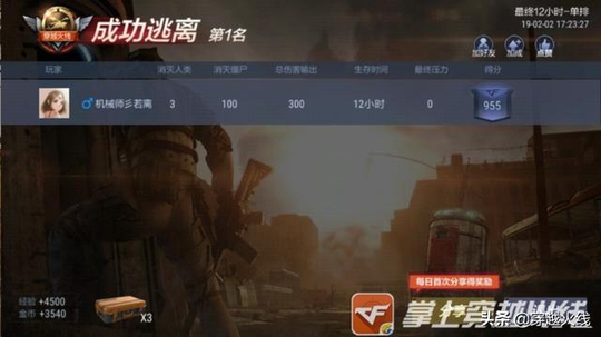 小结: 想要成功逃脱,也不是那么容易的路上会遇到很多未知因素,比如被别的玩家阴死、患上疾病病死、还有,被尸潮追逐体力不支而死,总之,想要成功逃脱,三分运气七分技术,在这里,小编祝大家能够成功成为最终幸存者!