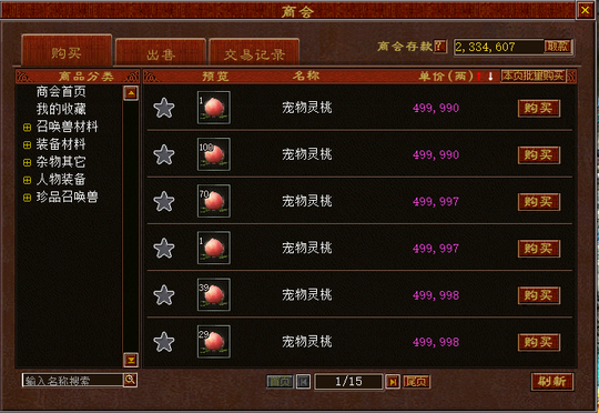 · 商会 :在2002服务器商会中,目前一个“宠物灵桃”的售价大约为50万银两。