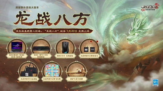 明日(1月20日 ) , “龙战八方” 玩法正式全服 , ROG魔霸9 锐龙9 16英寸游戏本、ROG机械键盘、ROG无线鼠标 等你来拿 ! 更有 “元神出窍” 玩法同步开启,胜者可夺取七彩珠(跨服),为本服赢取强大的增益与荣耀!