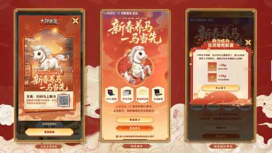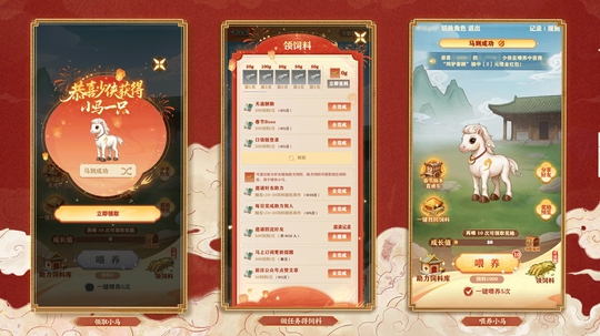 小马成长值每提升 1000 ,可领取“一马当先新春礼包”,在春节期间前往游戏内立即抽奖。