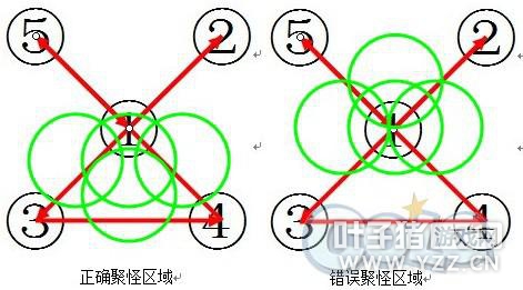 五星梯形阵最佳攻击范围:接触124,123,235攻击路线,五球全中范围基本覆盖阵形,怪要是再大点,想不中都难,如机械牛,这样还无法用狗狗定位,建议学习下遛狗