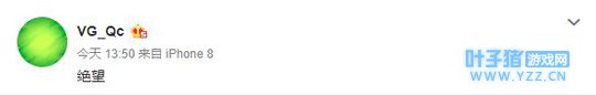 比赛结束后VG战队股东之一的绿皇也发了条微博,表示“绝望”