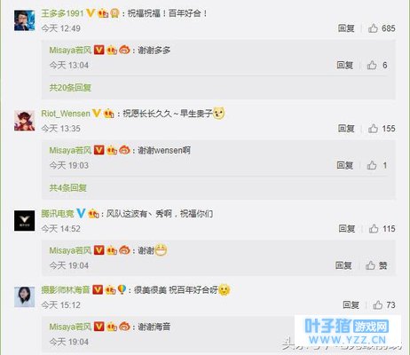 当然对于这个消息最多的肯定是祝福了,鼻队圈内圈外的好友也都是纷纷送上自己的祝福,包括腾讯电竞都来了,面子十足啊。