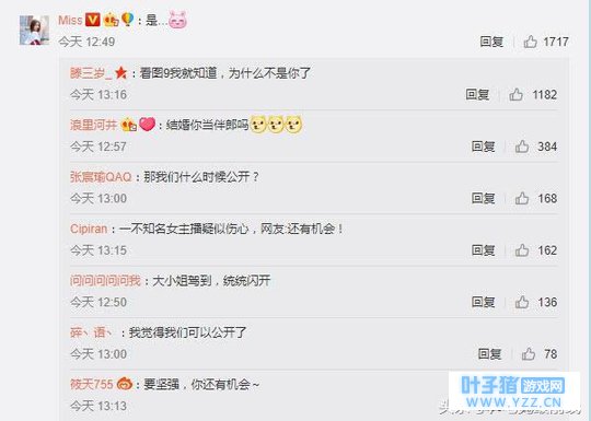 对于这个消息,网友们最关心的肯定是以前一直被大家撮合的MISS大小姐的态度了,MISS在评论下没有过多的话,只是简简单单的回了一个"是",应该是对若风那句"我老婆是不是超美"的回复了,但也引发了很多人的无限遐想,不过鼻队现在已经要结婚了,大家的八卦之心也可以放下了。