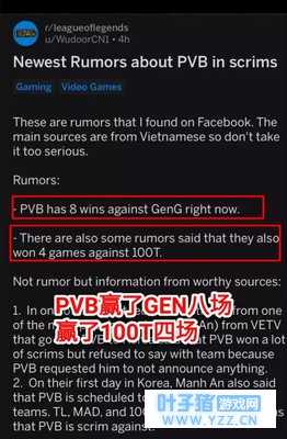 此前就网传PVB战队有八强的实力,但是大部分人都是不信的,最近又有人爆料PVB在训练赛中八次战胜GEN.G,四次战胜100T,该队的随队解说确表示最近队伍确实收获了很多训练赛的胜利,只是不能透露具体的名字。