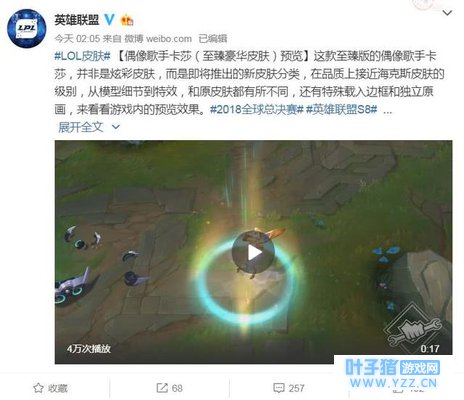 最近英雄联盟又要更新一堆新皮肤啦,比如驯龙大头、烈焰阿木木、万圣节风女……不过最受关注的应该是由狐狸、阿卡丽、伊芙琳、卡莎四人组成的偶像皮肤吧!而就在今日凌晨,英雄联盟官博发博公布了最新偶像皮肤的特效,而卡莎则是一款炫金豪华皮肤。