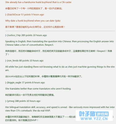 在了解余霜之后,又被她的美貌折服,有人遗憾的说,她(余霜)已经有一个男朋友了,而且还是LPL的解说(管泽元),一时间哀鸿遍野。而有些网友也不吝啬赞美之词:她的翻译功底,比一些不负责的主持还要强!