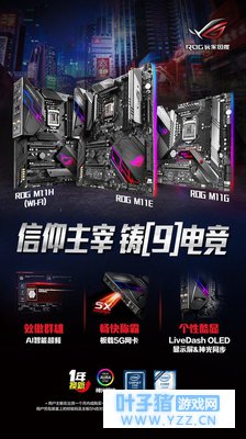 ROG玩家国度系列主板为信仰发烧而生,支持AI智能超频技术,拥有无可匹敌的战舰级性能、无出其右的创新功能和颠覆美学的外观设计,可谓是武装到了牙齿,可助你征服星辰大海!此次ROG玩家国度Z390系列主板阵容相当强大,共推出四款新品,分别为旗舰梦幻装备ROG MAXIMUS XI EXTREME(简称ROG M11E)、电竞装甲ROG MAXIMUS XI FORMULA(简称ROG M11F)、人气爆款ROG MAXIMUS XI HERO (WI-FI)[简称ROG M11H(WIFI)]和强势回归的ROG MAXIMUS XI GENE(简称ROG M11G)。 全新的ROG玩家国度Z390系列不仅有常见的ATX版型,更有基于M-ATX版型设计的主板。其拥有绝佳的超频技术、先进的散热功能、前卫的疾速互联以及绝美的外观设计。支持AURA SYNC神光同步,可与其他设备一起进行灯效联动;配备预装ROG一体化I/O背板,简单易安装,防尘防静电,提升安全性。 ROG玩家国度Z390系列主板拥有水冷控制区,可监测水冷散热器运行状态,自行调节,避免不断调试安装的困扰。而ROG M11F主板更配备CrossChill EK II混合散热模块,兼具风冷和水冷混合散热,经改良加大后的散热鳍片可直线提升散热效果,内部水路设计精益求精,较于风冷,采用水冷散热时保持更低的MOSFET温度。 ROG玩家国度Z390系列主板板载Intel Wireless-AC 9560无线网卡,支持Intel CNVi WIFI技术,提供更快的无线网络速度;而ROG M11E和ROG M11F更配备Aquantia 5G网卡,给予疾速网络传输体验。ROG M11E和ROG M11G特别设计了ROG DIMM.2扩展卡,并为其配备专属散热片,可额外安装双M.2固态硬盘,不仅有效降温,也可取得更高的SSD性能。 ROG M11E和ROG M11F主板拥有创新十足的LiveDash OLED系统状态显示屏,可显示的内容非常丰富,包括CPU温度、频率、风扇转速、故障诊断信息等,甚至支持显示个性化图文信息。ROG M11G主板支持双倍内存容量技术,通过特制的内存布线技术,单内存插槽容量高达32GB,让你轻松体验容量翻倍! ROG STRIX猛禽系列Z390主板:以光为荣 为赢而生
