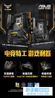 ROG玩家国度新贵ROG STRIX猛禽系列,专为电竞游戏玩家而生,拥有一系列专业电竞增效技术,包括电竞氛围灯、电竞音效、电竞网络、电竞提速、电竞守护和电竞快速互联等,助你制霸游戏战场!全新登场的ROG STRIX猛禽系列主板包括ROG STRIX Z390-E GAMING、ROG STRIX Z390-F GAMING和ROG STRIX Z390-H GAMING在内的ATX大板型,以及MINI-ITX迷你版型ROG STRIX Z390-I GAMING主板。 此次该系列主板采用极具未来感的美学演绎,I/O盔甲上新增电竞图腾和ROG标志,并在PCB和散热片上也融入电竞元素,时尚的电竞风格让人眼前一亮。均配备预装ROG一体化I/O背板,采用超大散热鳍片设计,拥有多组特制电感导热贴,涵盖范围延伸至电感区,可大幅提升导热效率,强效降温,满足新一代英特尔处理器的需求。且多款主板支持进阶版AURA SYNC神光同步技术,并拥有全新可编程灯带接针,使其更具炫酷个性,是性能与颜值兼备的实力巨作! 作为电竞利器,ROG STRIX猛禽系列Z390主板拥有以英特尔千兆网卡为基础的电竞网络,其搭配的LANGuard和GameFirst技术能够为玩家带来流畅的网络游戏体验和贴心的网络安全保护;其中,ROG STRIX Z390-E GAMING和ROG STRIX Z390-I GAMING主板更板载IntelWireless-AC 9560无线网卡,无线传输更疾速。而电竞音效采用SupremeFX S1220A高清晰音频芯片,采用有EMI声卡防护罩、音频分割线、日系Nichicon音频电解电容和双耳放等专业音频设计,带给玩家身临其境的游戏音效体验。特别是,搭配声波雷达3代“听声辨位”技术,还可助力玩家进一步掌握游戏战局的主动权。具有一流的性能、创新和品质,为玩家提供精彩绝伦的游戏体验,尽享高端电竞PC性能! TUF GAMING电竞特工系列Z390主板:电竞特工 游戏利器