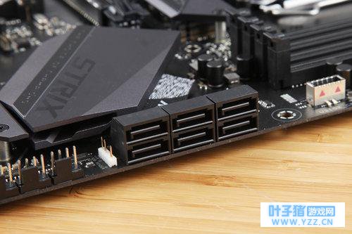 在主板的右侧配备有六个 SATA 3.0接口,接口向外的设计对于装机理线来说更加方便,玩家可以通过这些接口连接高速大容量硬盘,拓展主机存储空间。