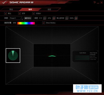 通过内置的AURA软件可以实现对主板、显卡等支持AURA设备的灯效进行调节同步,支持12种不同的灯光效果变化,并且如果你并不喜欢机箱内炫目的RGB光效的话,可以在软件内一键关闭,减少炫目灯效对你的干扰。 声波雷达