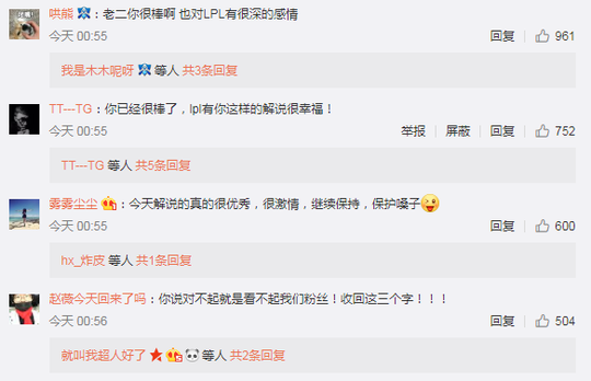 记得可以说是在LPL解说里面最出色的解说之一了,这次微博向粉丝们致歉也是得到了许多正面的回应。希望记得在解说之余多多注意自己的身体! |