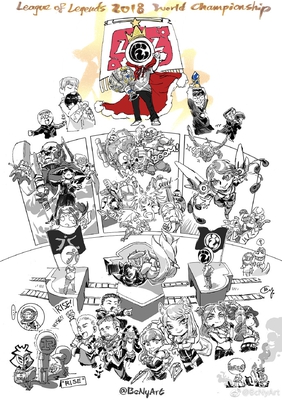 微博有一位画师画了一张今年总决赛IG夺冠的画像,里面细节满满,不多说先上图。