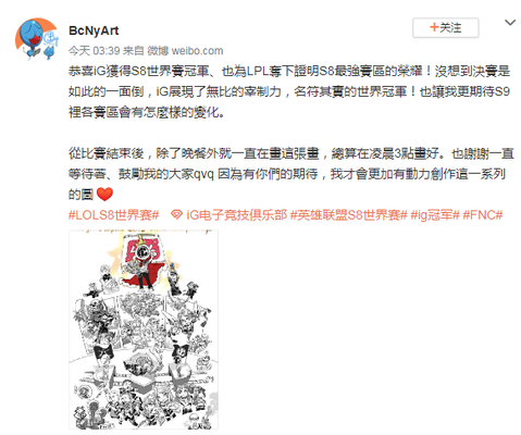 画师执笔IG夺冠 细节满满获网友