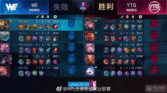 中期双方中路爆发团战,WE鲁莽开团,被YTG反杀三人,而后一路推进,推掉WE下路高地.最后在高地处爆发团战,YTG一马当先一举拿下比赛。