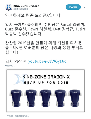 在Inven爆料Deft、Pawn、TusiN加入KZ后,KZ官推刚刚确认了三名选手的加入,与原替补上单Rascal和Cuzz一起,组成了KZ战队2019年新阵容。