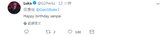 最近不常在推特上出现的Perkz闻风而来,在推特上也为Ruler选手献上了生日祝福: