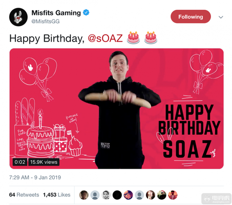 北京时间1月10日,欧洲Misfits战队迎来了队内老将sOAZ的生日。Misfits官推发布祝福,祝这位25岁的老将生日快乐。