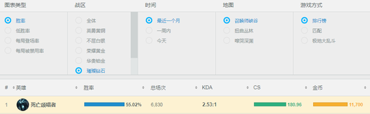 符能回声 是AP打野必备,蓝色打野刀的减速效果,可以让死歌的抓人能力更强。 鬼书 的属性全面,而且带有重伤效果,打坦方面非常出众。后续可以选择提升法强的 帽子 ,或者增加团战进场能力的 沙漏 ,以及有更好穿透的法穿棒。 小结LOL里胜率一直是很神奇的东西,分段的差异导致一个英雄并不能适应所有分段,找准自己的段位,有针对的练习英雄才能最大程度的提高自己的胜率。 |