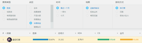 在白金的这个分段的玩家普遍已经对游戏对局有了一定的理解能力,但比起更高分段的玩家还是很容易出现个人主义。所以在这个分段中大家尽可能要选强势且稳定的英雄。