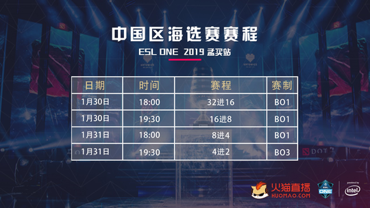 ESL One孟买站战中国区海选赛赛事信息 赛程: