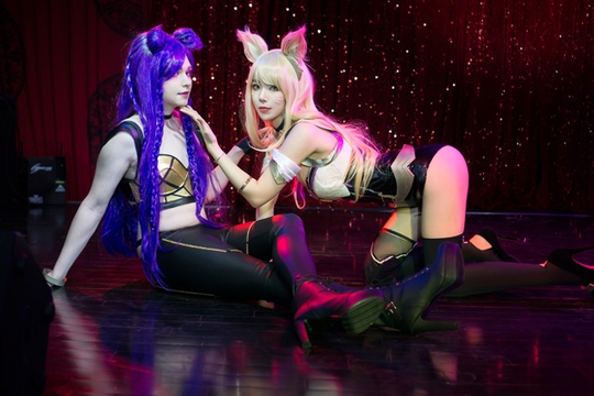 Sneaky扮演卡莎,女友扮演阿狸。这位女装大佬没有比赛的日子都在研究Cosplay吧?
