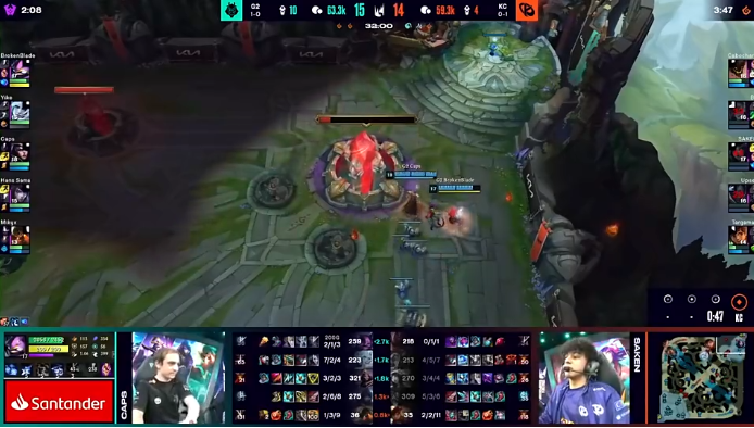 Bo和牛排的100%胜率组合,在揭幕战中就被破了不败金身。在对阵G2的比赛中,KC的上单和中单似乎都没有适应顶级联赛的强度。鉴于这两场比赛,KC面对的都是LEC最顶级的单人路,所以后续还有待观望。