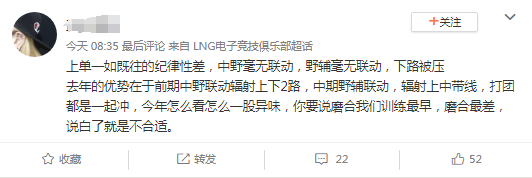 新赛季考验才刚刚开始,倘若LNG无法及时调整,相信粉丝们会进一步展示自身的“攻击性”。
