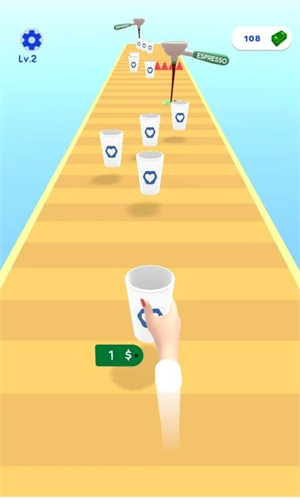 2、游戏将会从咖啡杯开始,不断跑酷然后收集咖啡杯并将它们排成一排。