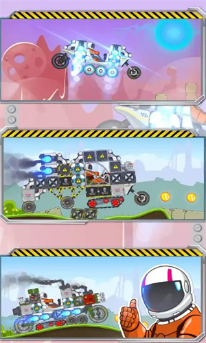 玩家可以在这里发挥自己的想象力自由的组装赛车,轻点屏幕就能不断加速,各种复杂的地形等待你的跨越,赶紧来看看你的赛车能坚持行驶多少米吧。