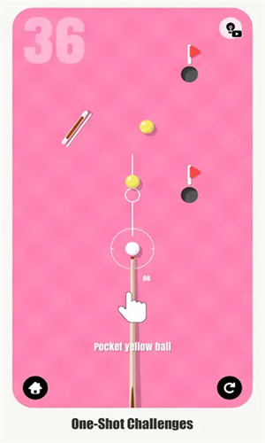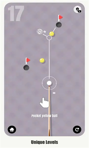完美口袋绝妙射门有超多不同的关卡可供你挑战,玩家必须一次将所有台球都打入袋内才能完成闯关哦,玩起来相当有挑战性。