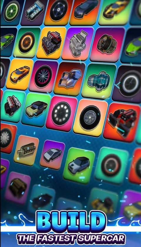 1、在合并面板上合并项目,为您的超级跑车解锁强大的升级,匹配车身、发动机和车轮,打造终极驾驶机器。