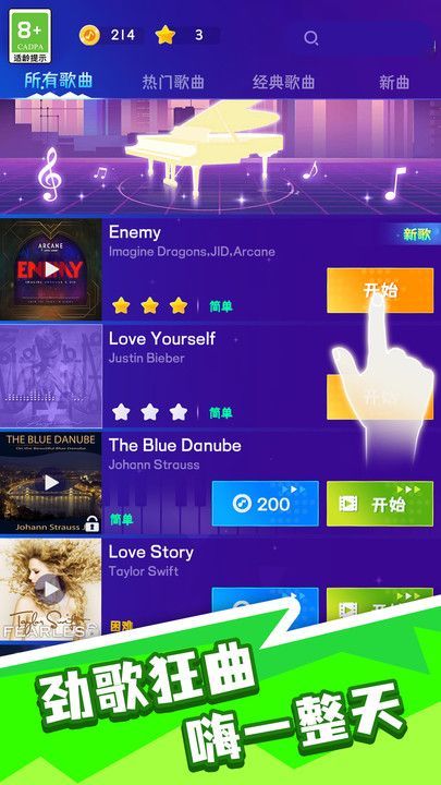 1、游戏当中不仅仅拥有着有趣的玩法和操作,而且游戏里的音乐曲目也是非常丰富,