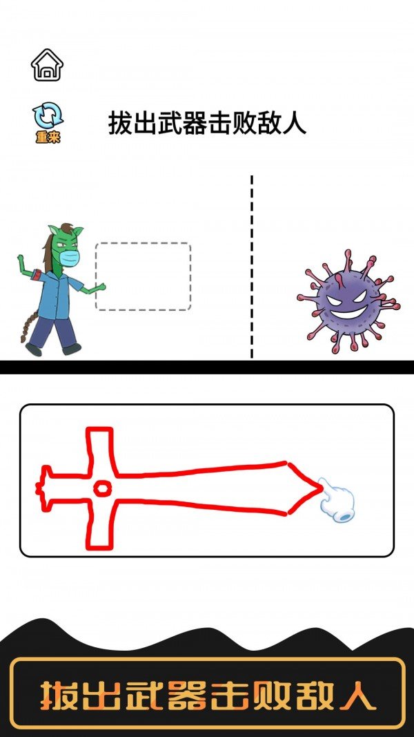 游戏玩家需要通过自己的双手去画出来不同的武器,你也可以画出来一些保护装置。