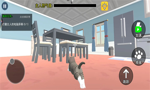小猫咪城市的玩法十分自由,你既可以在房间中对主人进行恶作剧,也可以在城市中自由的冒险与探索,没有任何的限制。