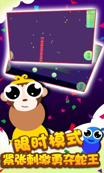 玩家可以直接利用摇杆控制小蛇前进,必要的时候还可以点击加速按钮,加快前进的速度。