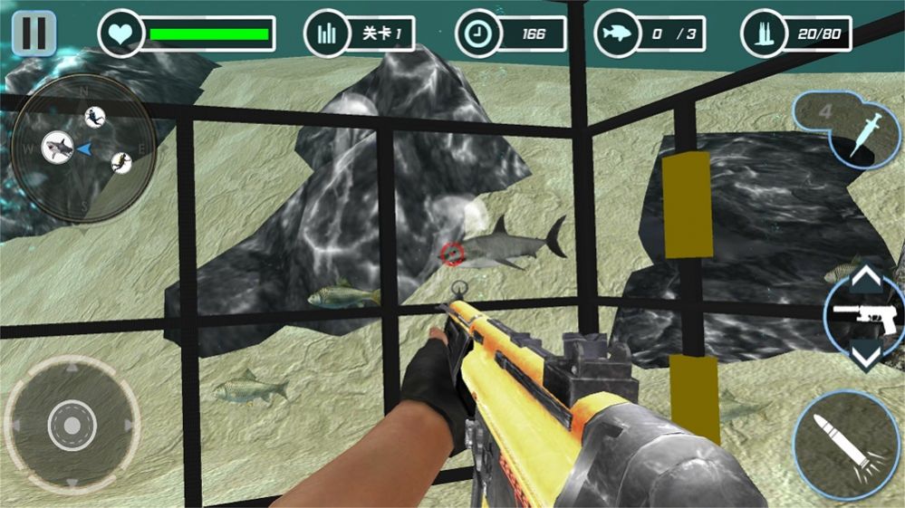 3、你还可以在各个地方猎杀危险的鲨鱼,找到它们的踪迹并准确射击它们。