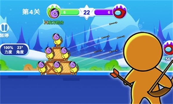 3、立即加入战斗,用你的弓箭征服对手,去获取更多的金币,你就能解锁武器。