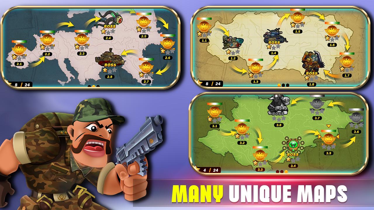 3、解锁更多的战场关卡,通过灵活的操控来让自己的士兵能够减少受伤的几率,去畅享冒险闯关!