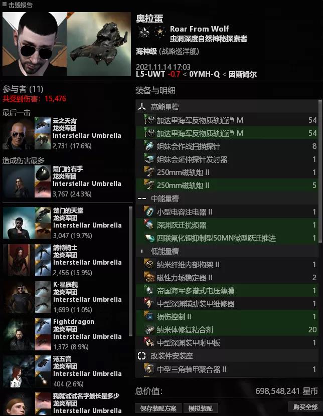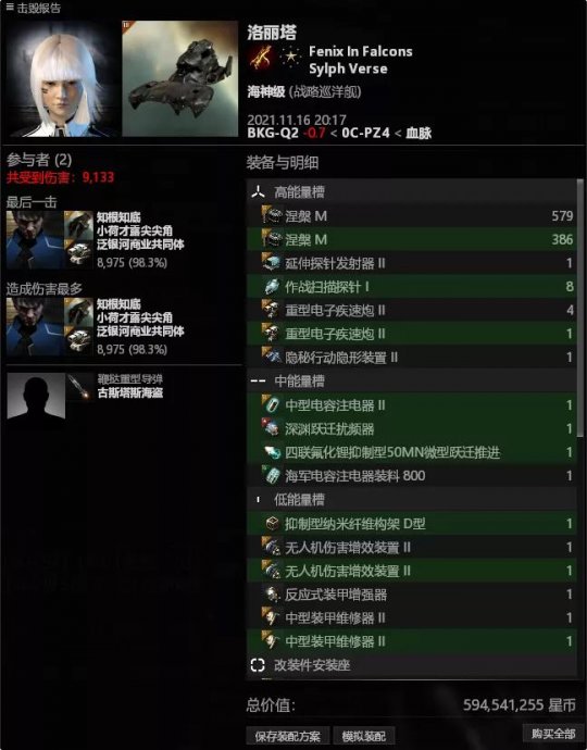 优点:为舰队提供扫描定位的能力,作战性能相对适中,属于节约人口的装配类型,在不丢失dps的前提下,让舰队具备了下作战针的能力。