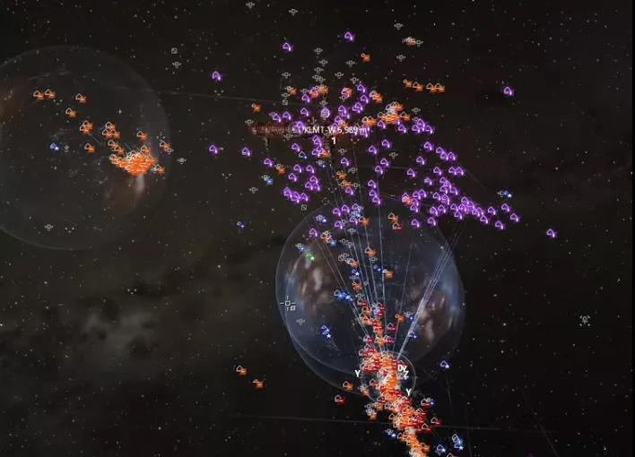 危急时刻,Pibc和VVV唤风队果断集火放松一下的监视者级,利用弹射攻击将北盟第一舰队逐一击毁。接着,唤风队转火第二舰队北盟舰长“渝都Q哥”的监视者级,弹射清掉了前方的敌人。经过两次范围弹射,北方联盟舰队出现大量伤损无力再战,撤离G-0Q86星系。