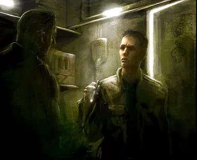 “让我来替你点吧……”传来一位老人的声音,他就倚靠在几步之外黑暗的角落里。小小的火舌突然腾起,火光使的板条箱和容器的不祥阴影在这个昏暗的房间里舞动。这位年轻的军官猛惊了一下,数据板掉落在地板上。